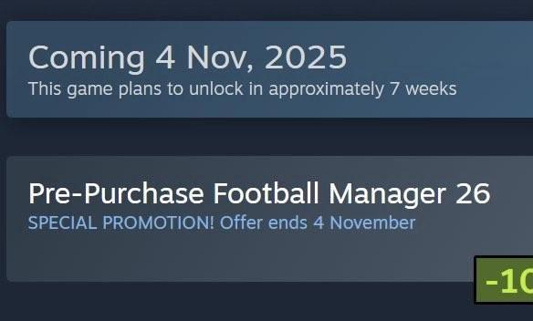 根据Steam商城显示,《Football Manager 26》将于11月4日发售,售价为268元。